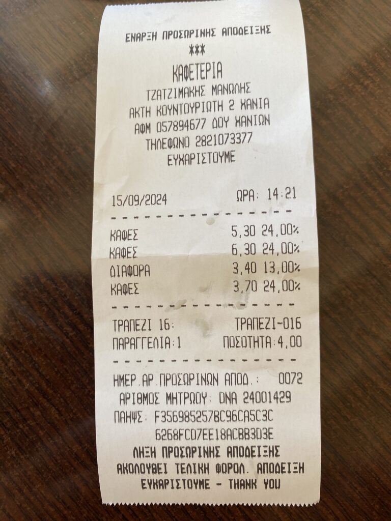 Einen Frappe im Café Oés getrunken und gemerkt wie soll man die Rechnung lesen?!? und Tammy schafft es nicht ein Bild mit Inhalt zu machen!!!