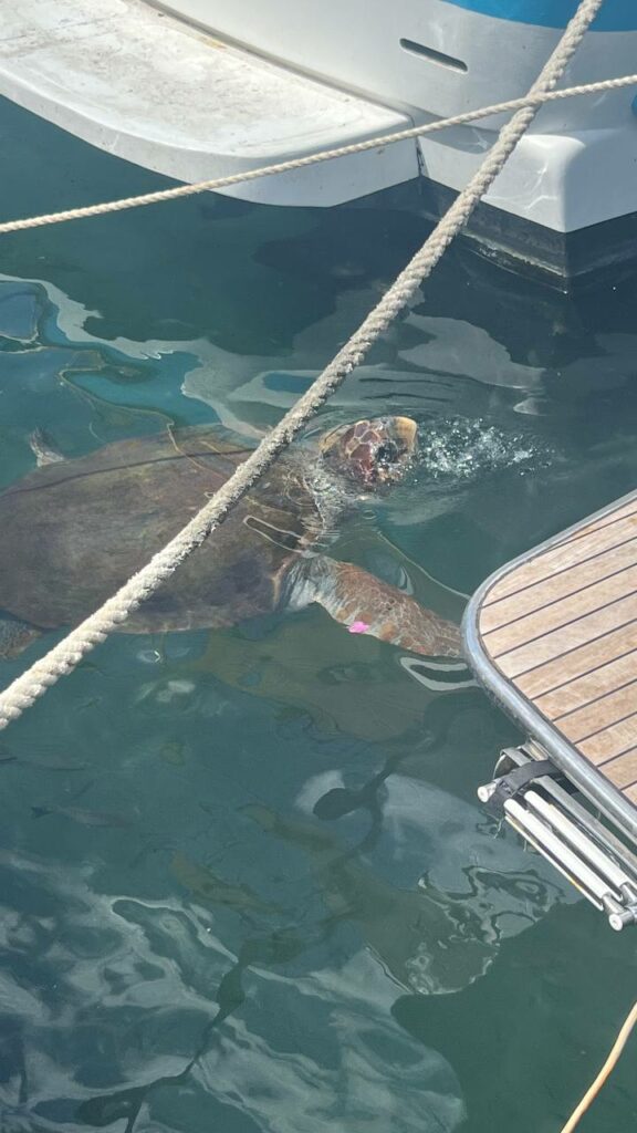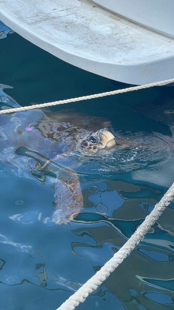 Da ist die Schildkröte die im Hafen gefüttert wird und immer wieder zu sehen ist! Wir hatten Glück sie sehen zu können. Dies hatte der Reiseleiter Live gestern bei der Jeep Tour erwähnt!