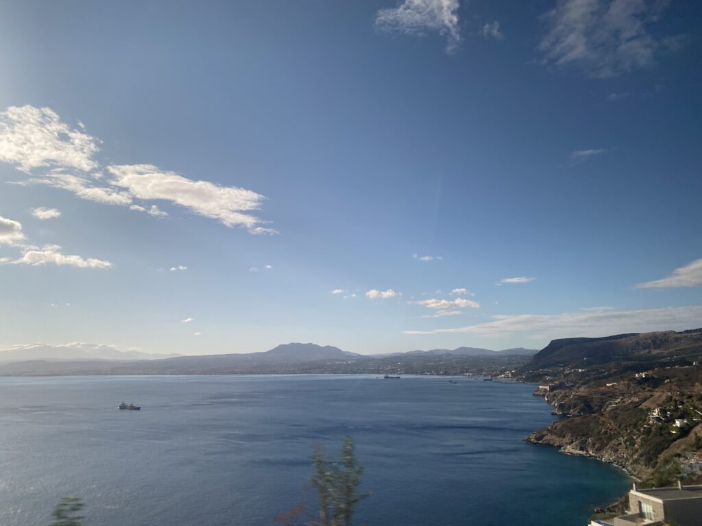 Heute war die N8 kurz! 06:50 aufstehen dann 07:20 Frühstück und 7:50 Abholzeit von der TUI! Leider 25 min verspätet kam der Bus an und wir waren durch die Reisezeit ca. um 10:30 bei Knossos! De ehemaligen Palast von Knossos erbaut vom Minos älteste Sohn vom Zeus und Europa! Ok viel zu viel Geschichte hier paar Eindrücke das andere kann im Internet gelesen werden. Vorher noch Bilder vom Bus aus – Weg vom Rethymnon nach Heraklion.