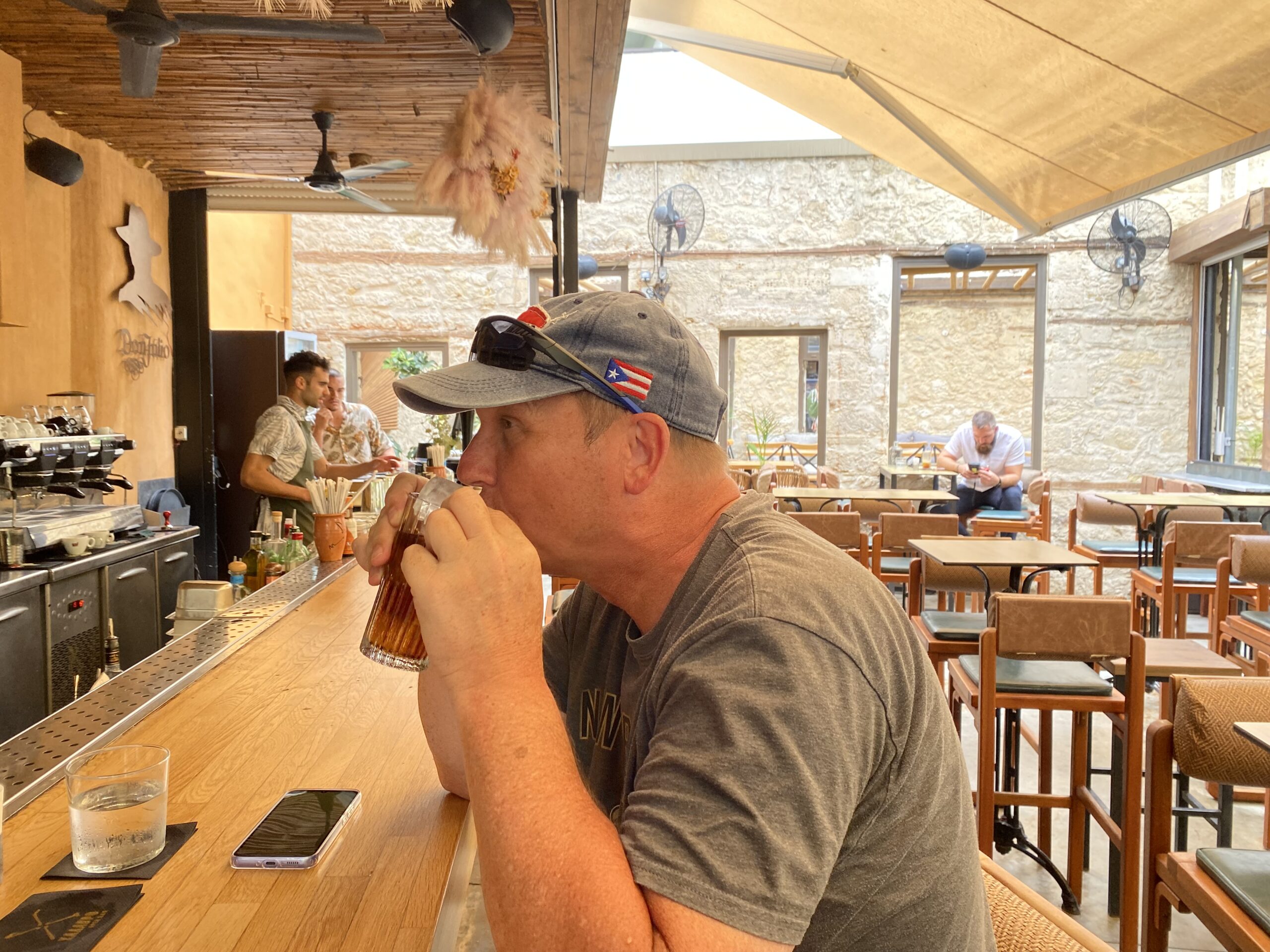 Wir hatten viel Zeit in Heraklion und da hat Holger eine schöne Bar Don Julio ausfindig gemacht, welche nicht überfüllt war mit Menschen. Dort haben wir ein bzw. zwei Rumcola an der Bar getrunken.