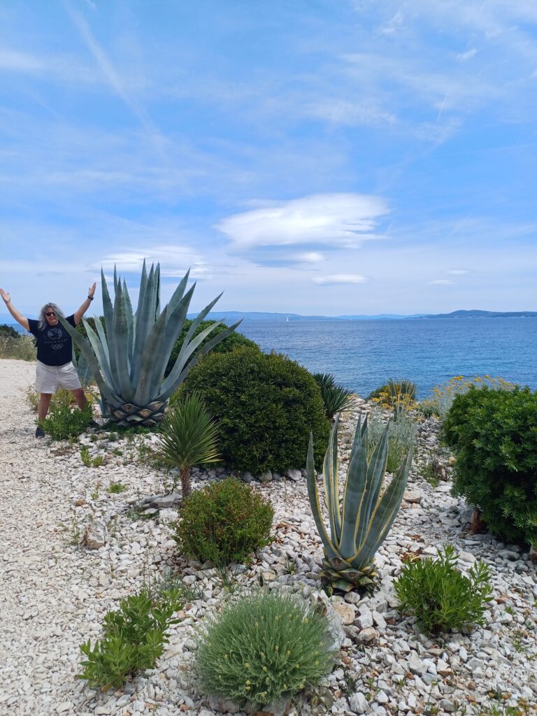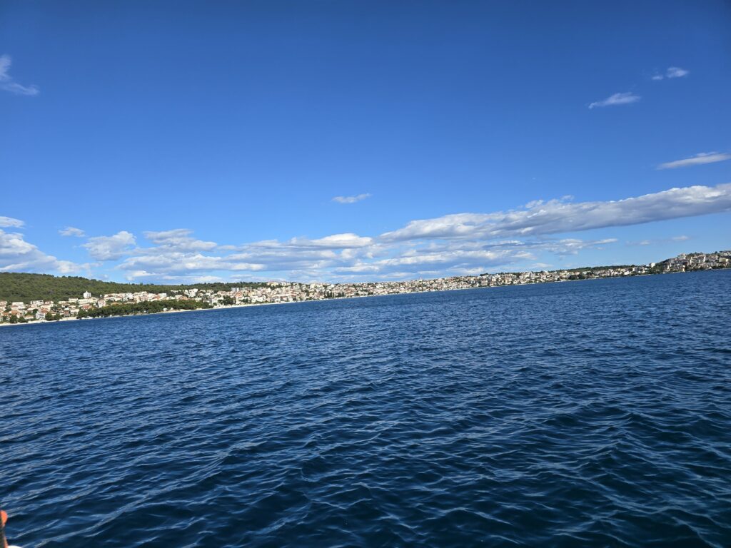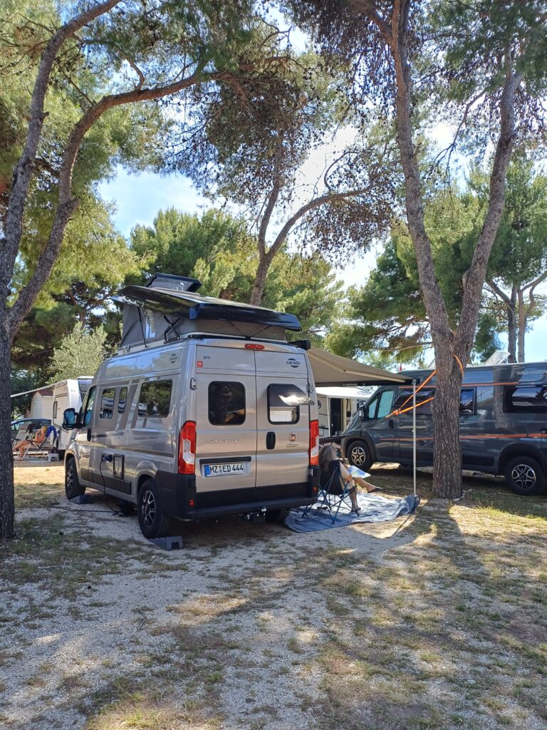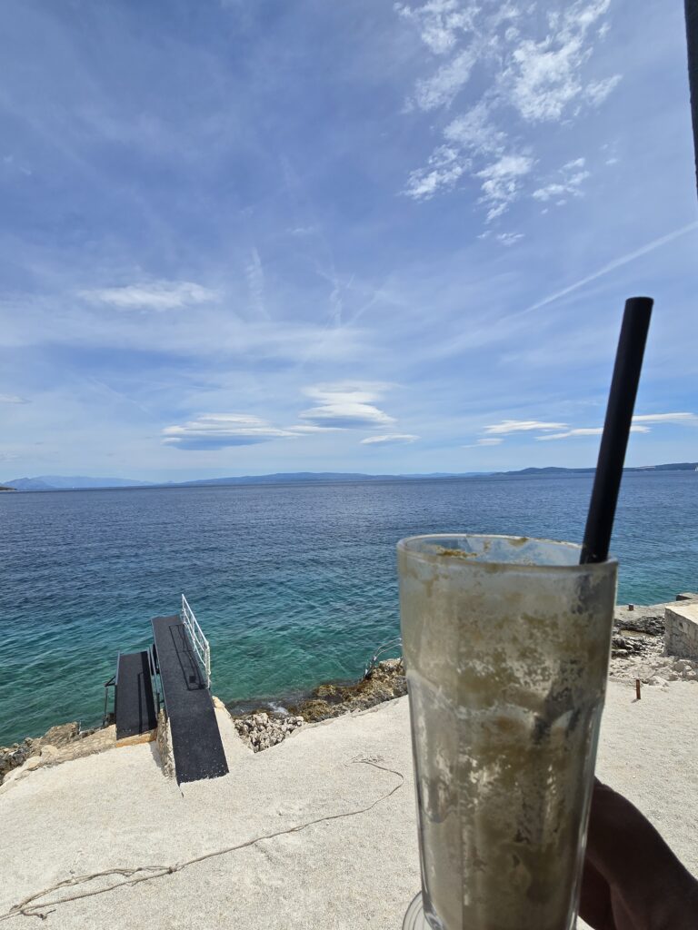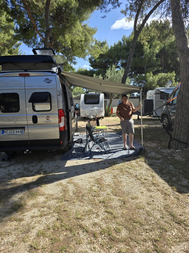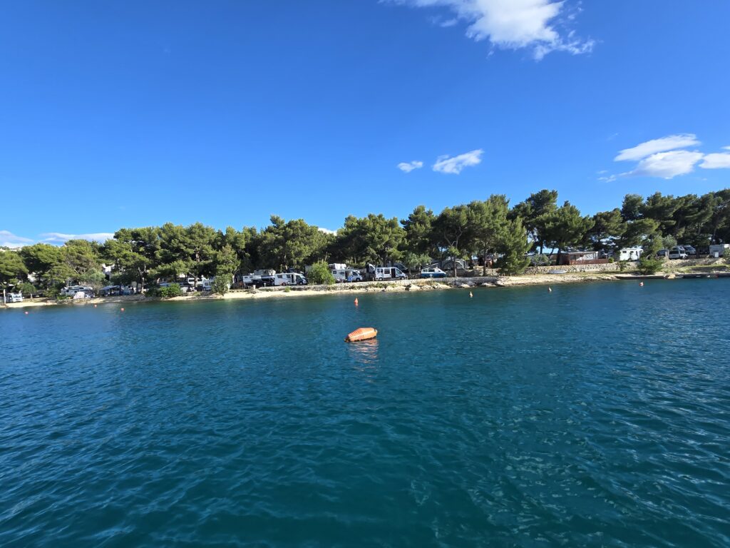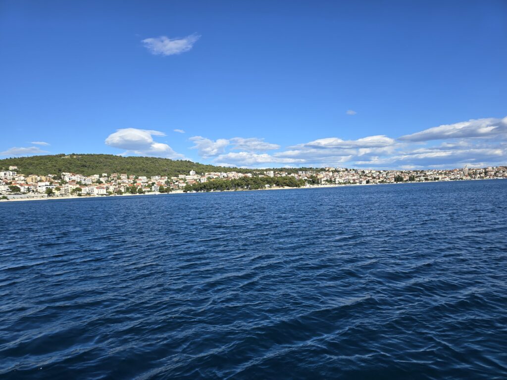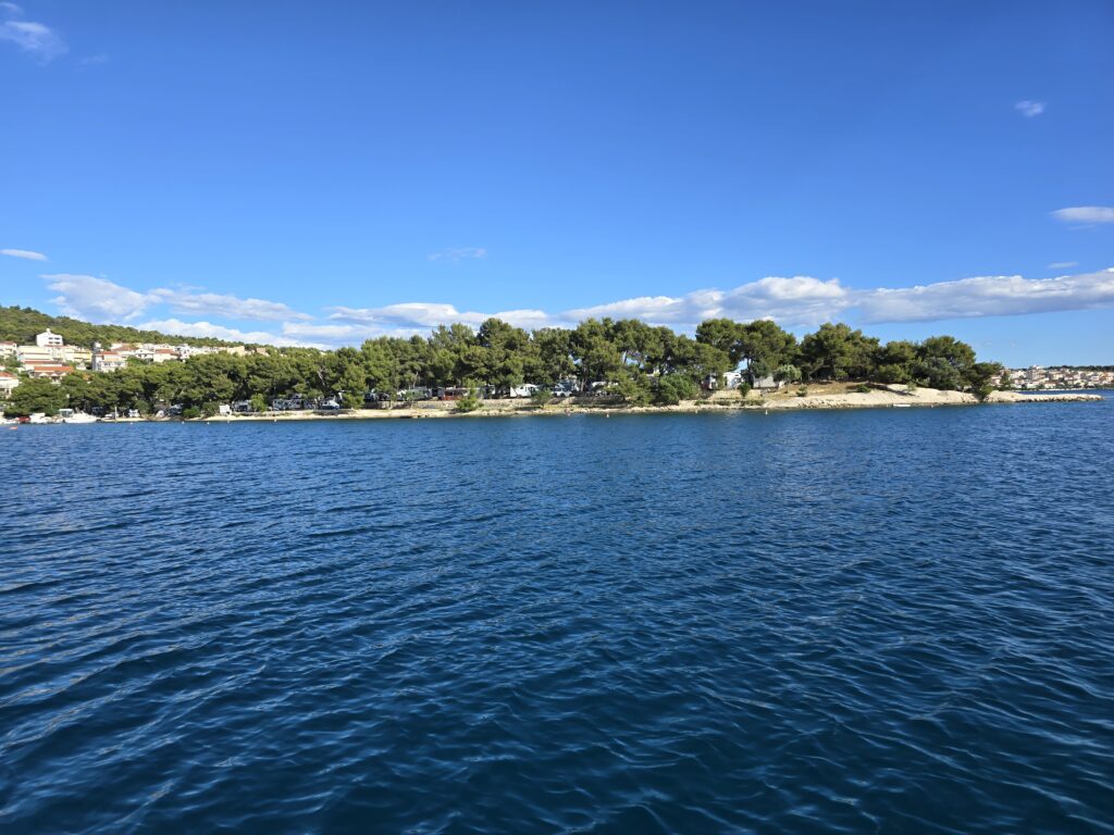 Diese Nacht hat Tammy auf den Hubdach geschlafen und zwar gut und lange. Erst um kurz nach 9 aufgewacht und schön gefrühstückt. Danach wurde der Camper etwas gereinigt und um 12 Uhr sind wir los über die Hügeln auf die andere Seite von Okrug (2,8 km) gelaufen. An der Küste ein Eiskaffe getrunken und den tollen Blick genossen.