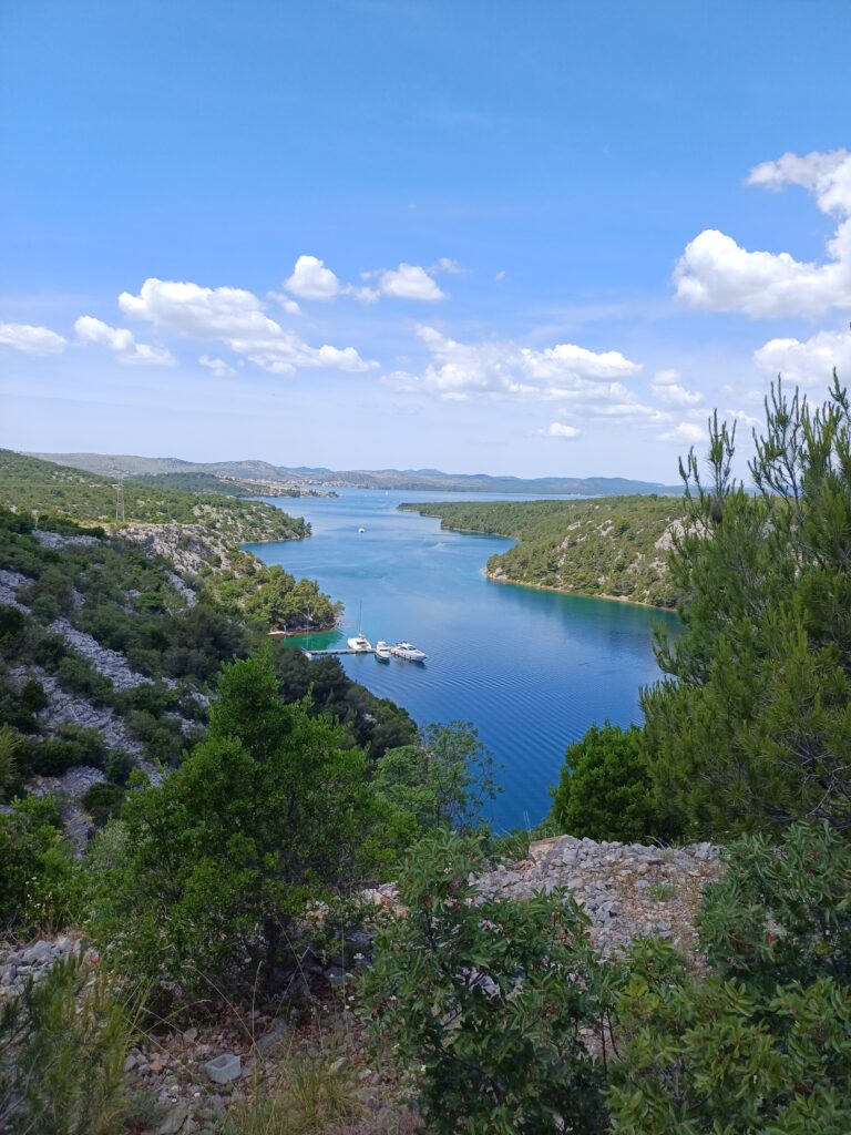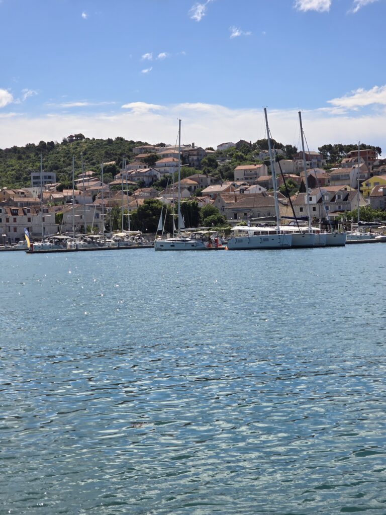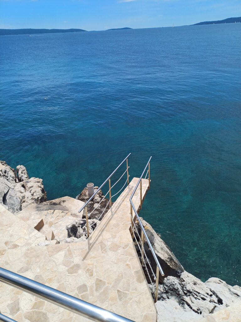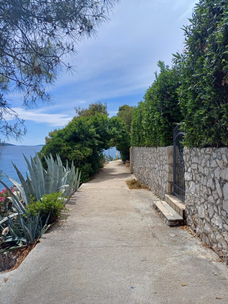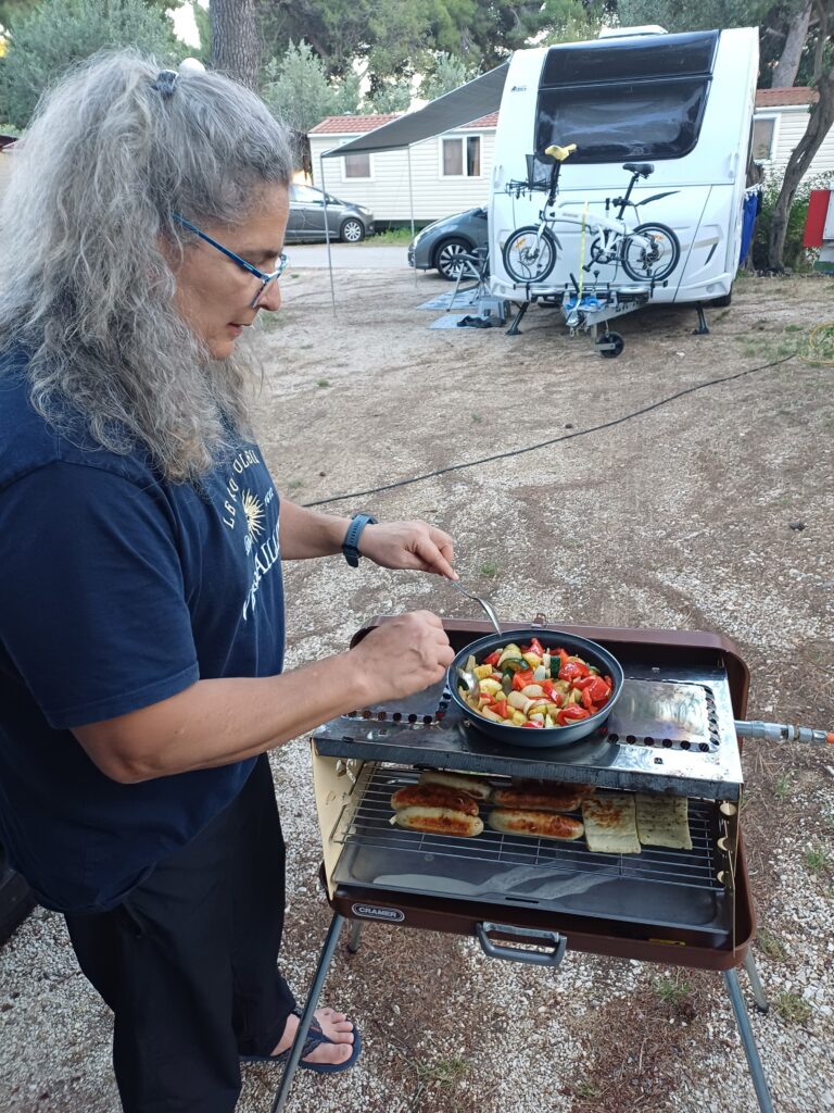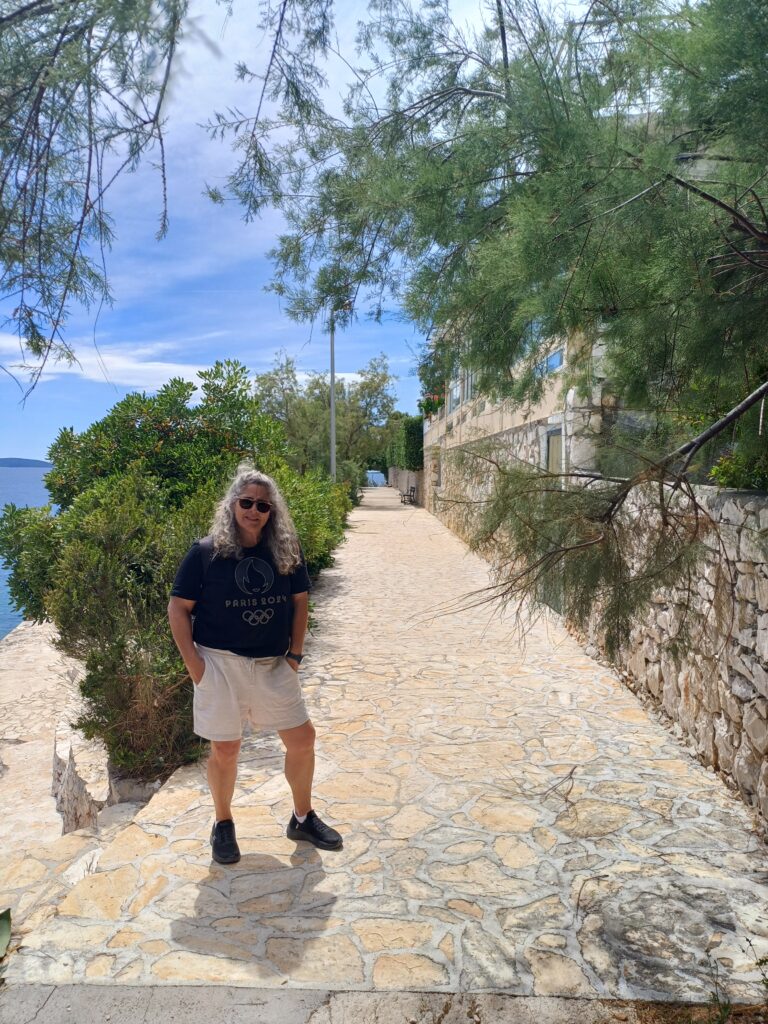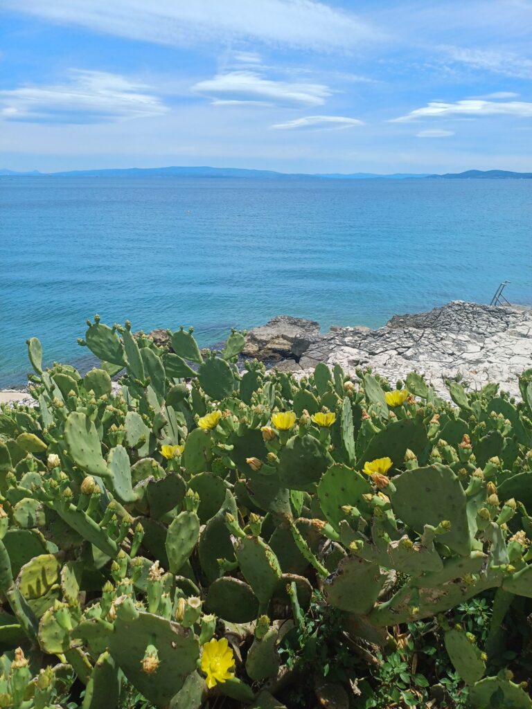 Diese Nacht hat Tammy auf den Hubdach geschlafen und zwar gut und lange. Erst um kurz nach 9 aufgewacht und schön gefrühstückt. Danach wurde der Camper etwas gereinigt und um 12 Uhr sind wir los über die Hügeln auf die andere Seite von Okrug (2,8 km) gelaufen. An der Küste ein Eiskaffe getrunken und den tollen Blick genossen.