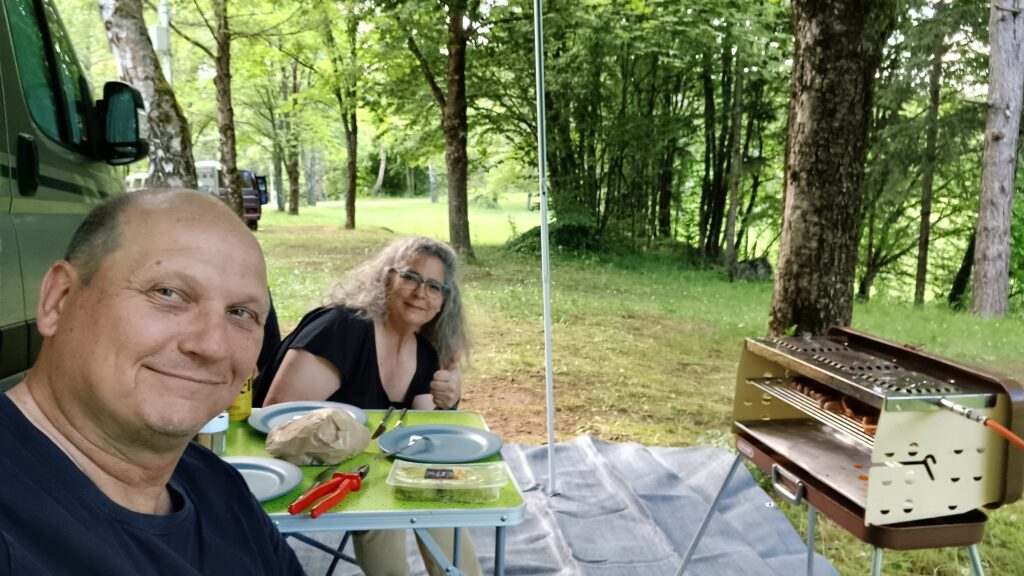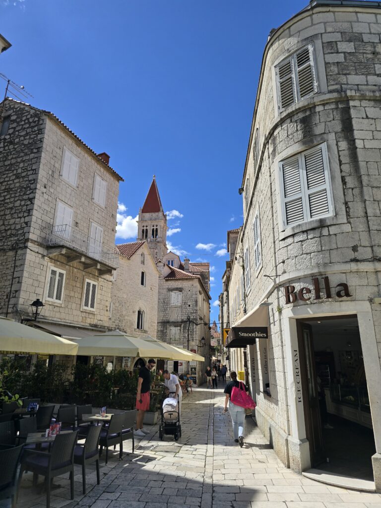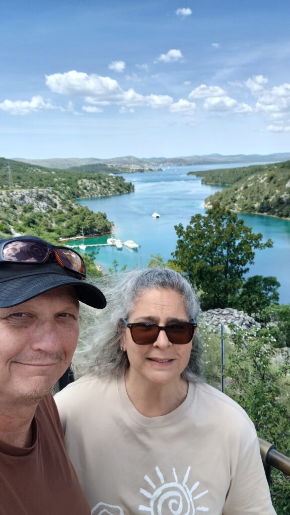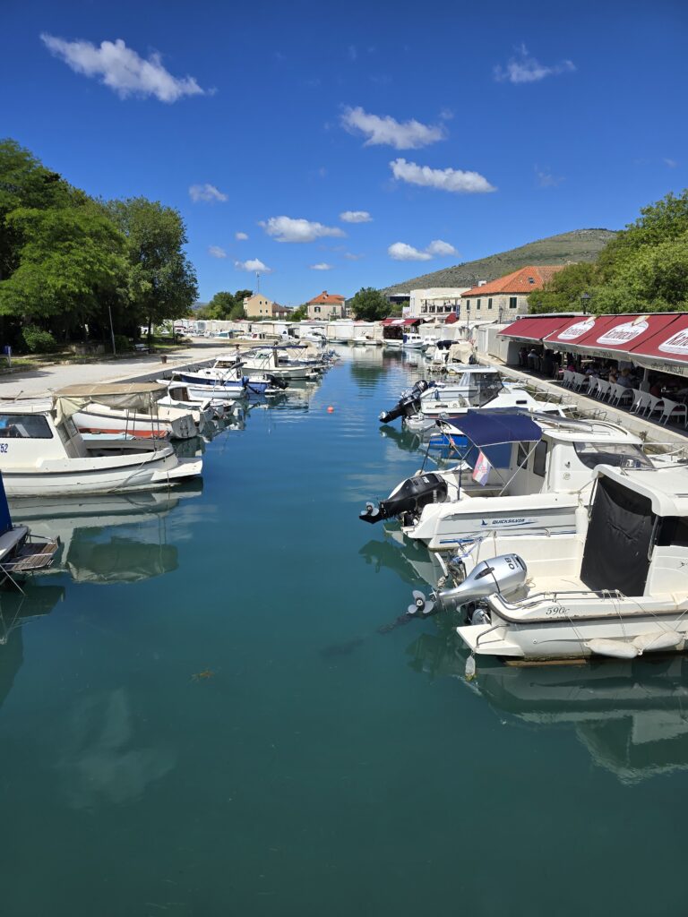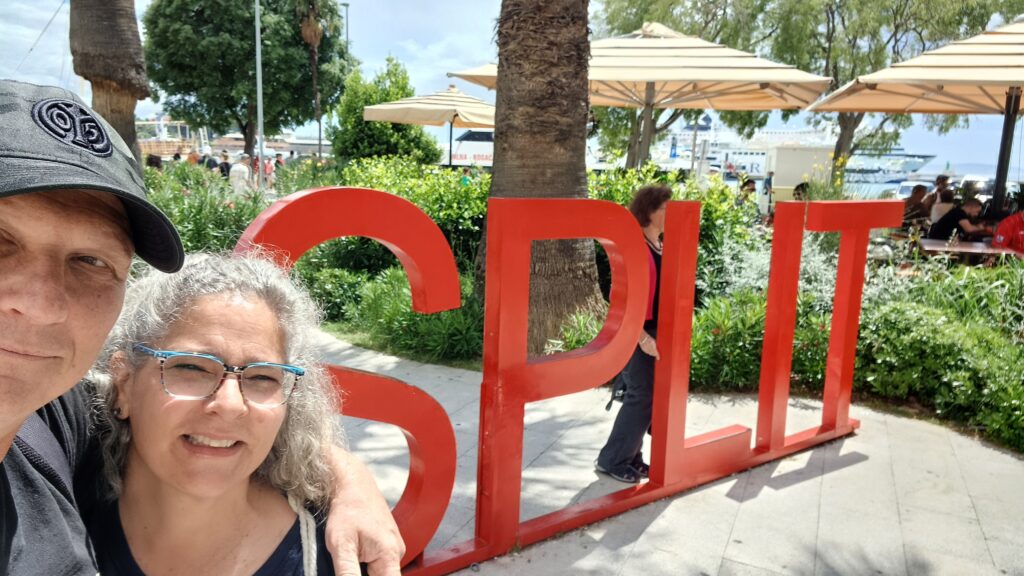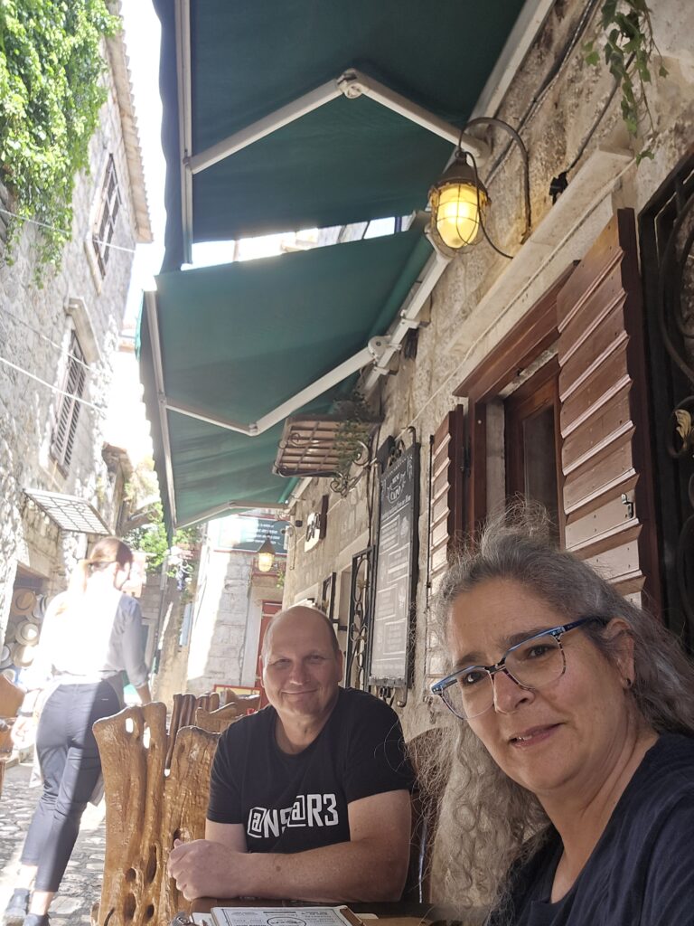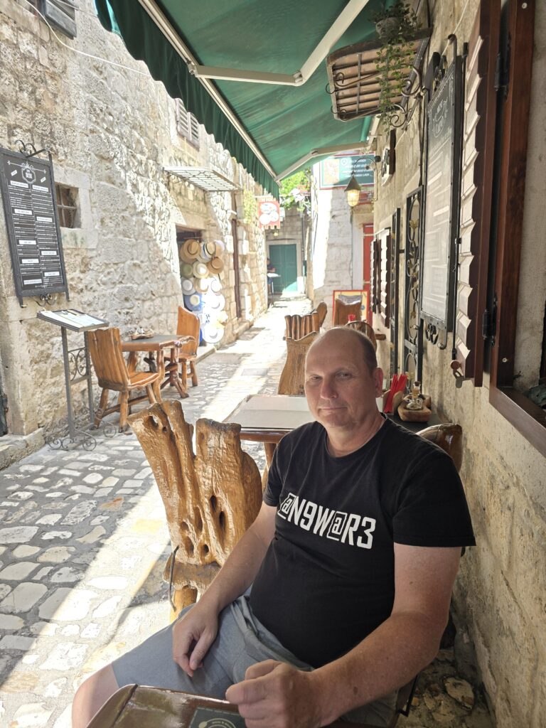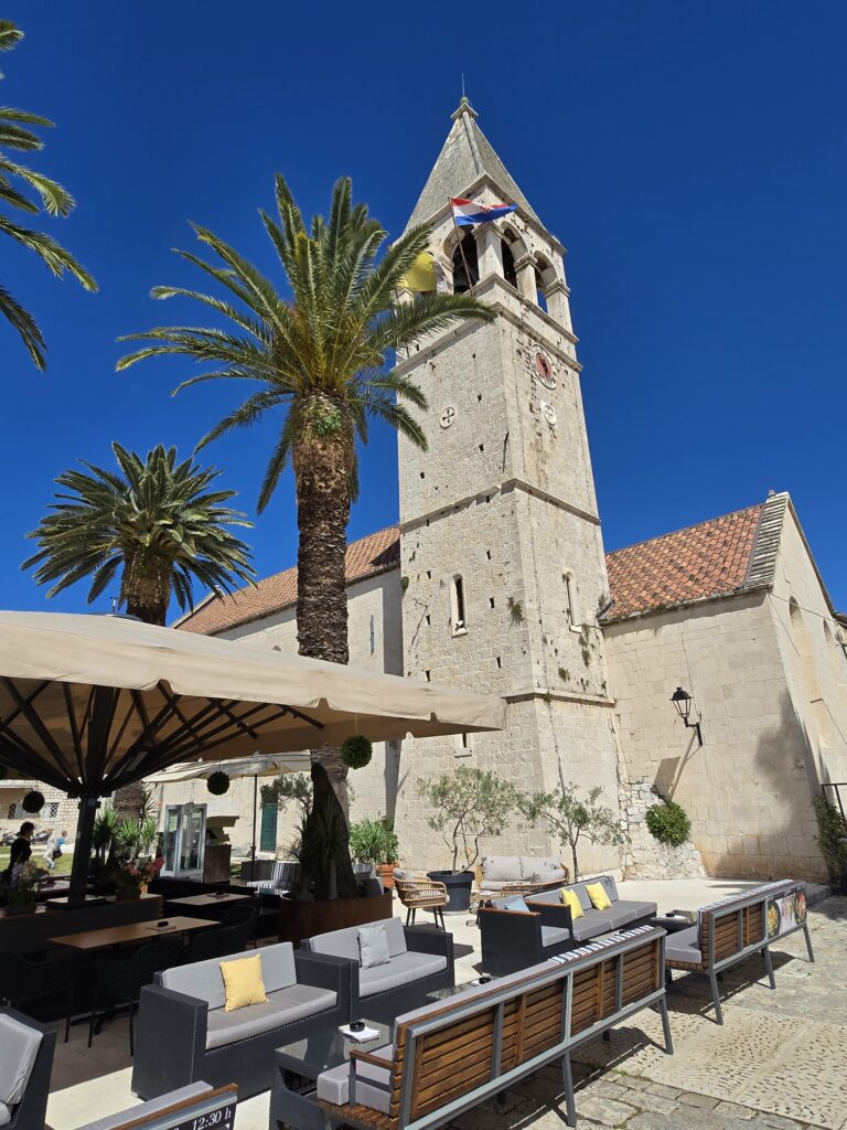 Diese Nacht hat Tammy auf den Hubdach geschlafen und zwar gut und lange. Erst um kurz nach 9 aufgewacht und schön gefrühstückt. Danach wurde der Camper etwas gereinigt und um 12 Uhr sind wir los über die Hügeln auf die andere Seite von Okrug (2,8 km) gelaufen. An der Küste ein Eiskaffe getrunken und den tollen Blick genossen.