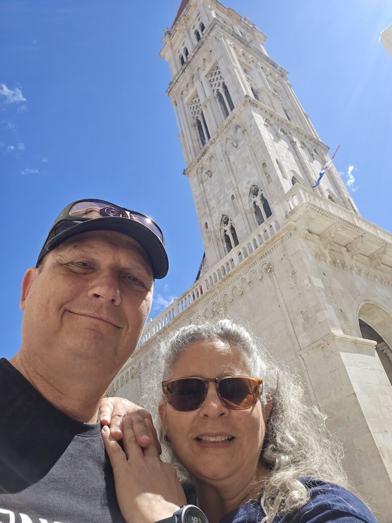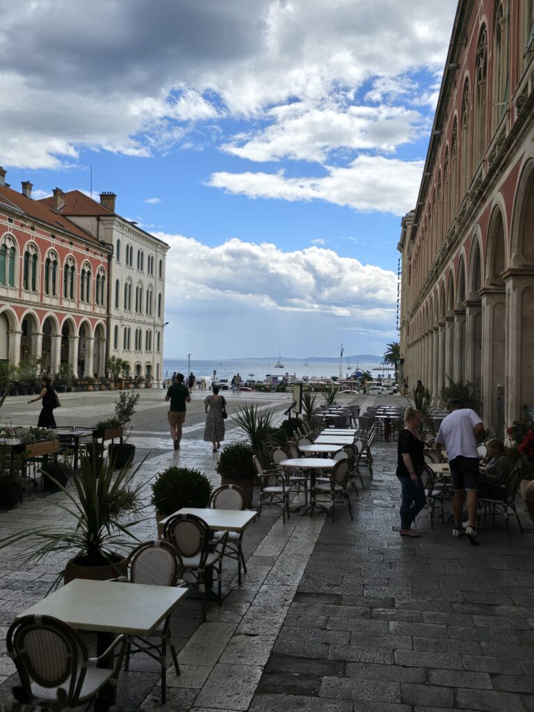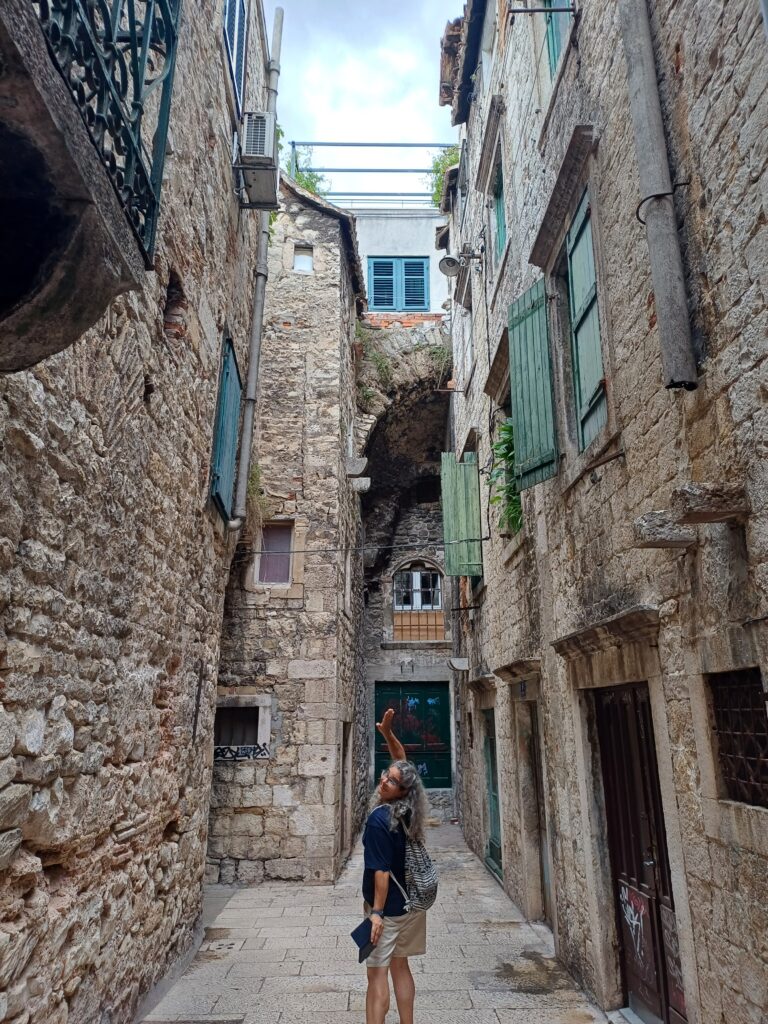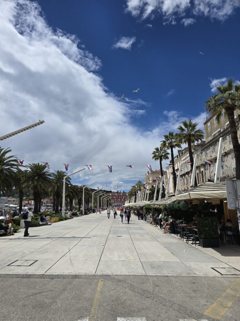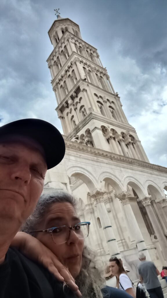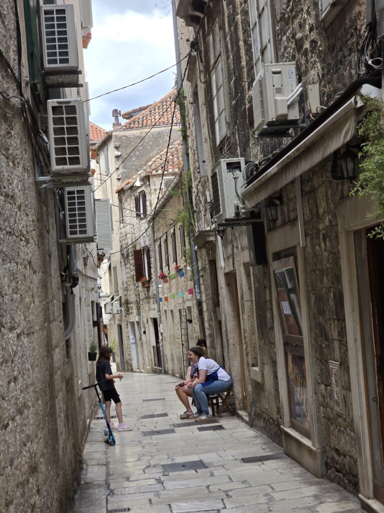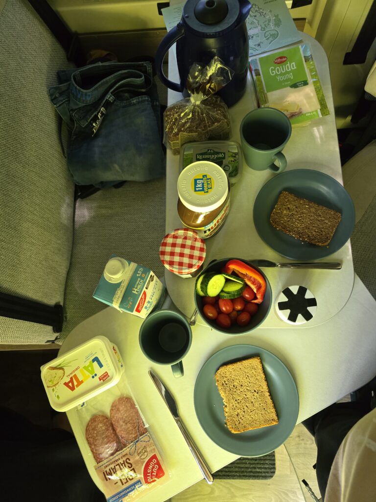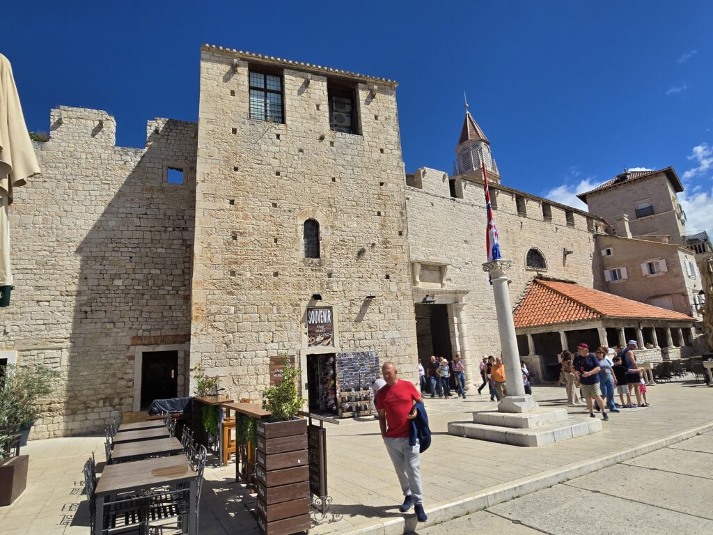Diese Nacht hat Tammy auf den Hubdach geschlafen und zwar gut und lange. Erst um kurz nach 9 aufgewacht und schön gefrühstückt. Danach wurde der Camper etwas gereinigt und um 12 Uhr sind wir los über die Hügeln auf die andere Seite von Okrug (2,8 km) gelaufen. An der Küste ein Eiskaffe getrunken und den tollen Blick genossen.