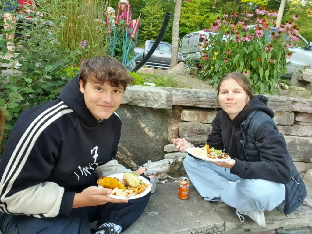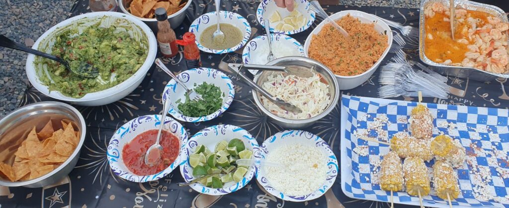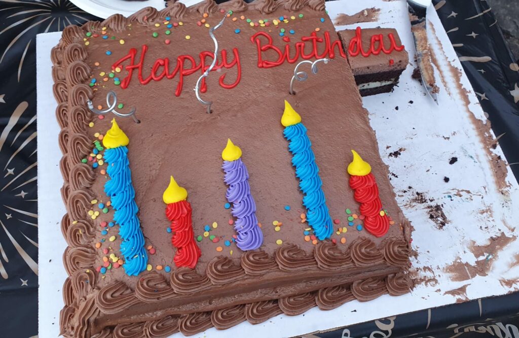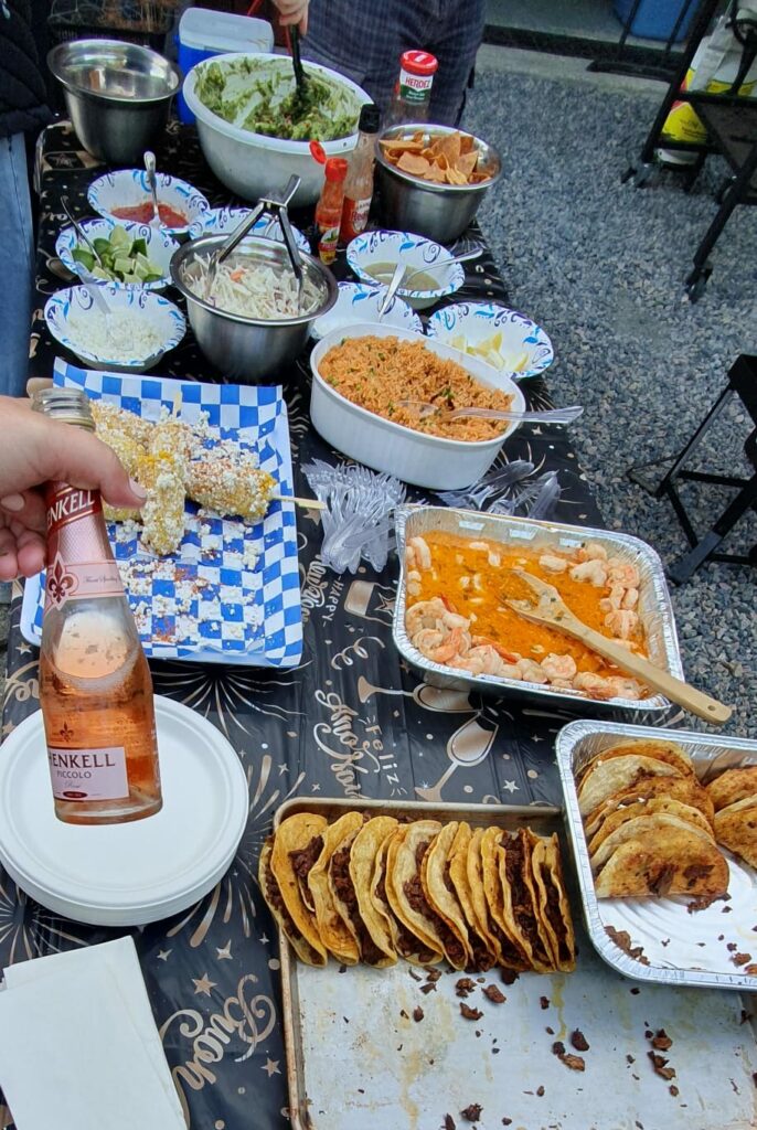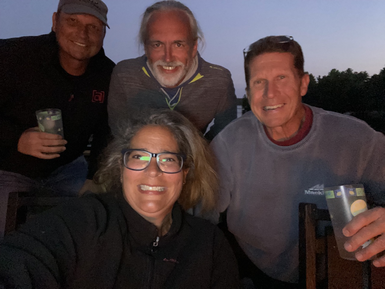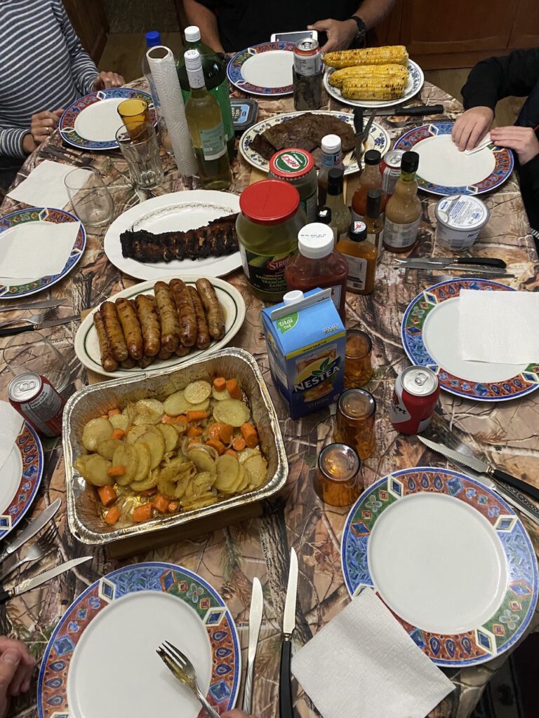 Frühen Nachmittag sind einige „getubt“ und abends ab 17:30 sind wir zum Nebengrundstück von Phil und Roberta um ein 4-fachen Geburtstag zu feiern … (Tammy kennt den „Slim Shady“ von Dave🤪 1/3 Vodka, 1/3 Soda und 1/3 Slim Mango juice).