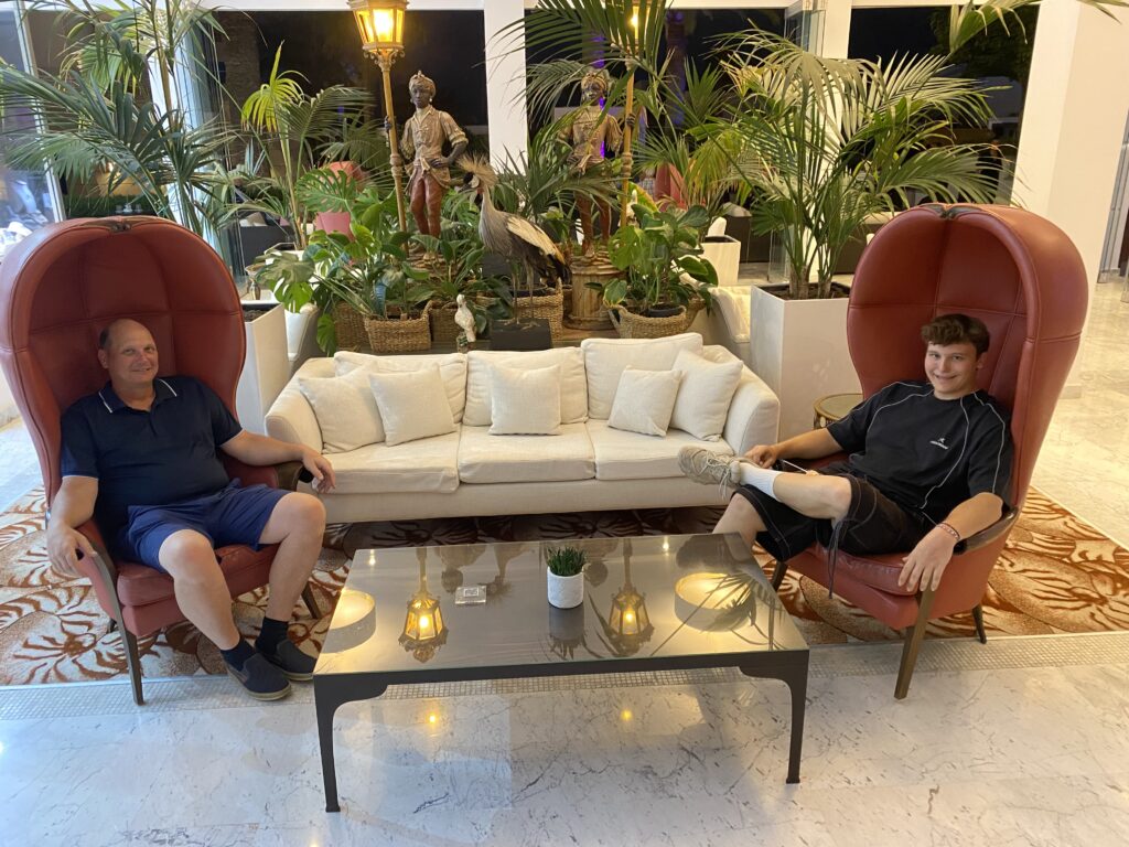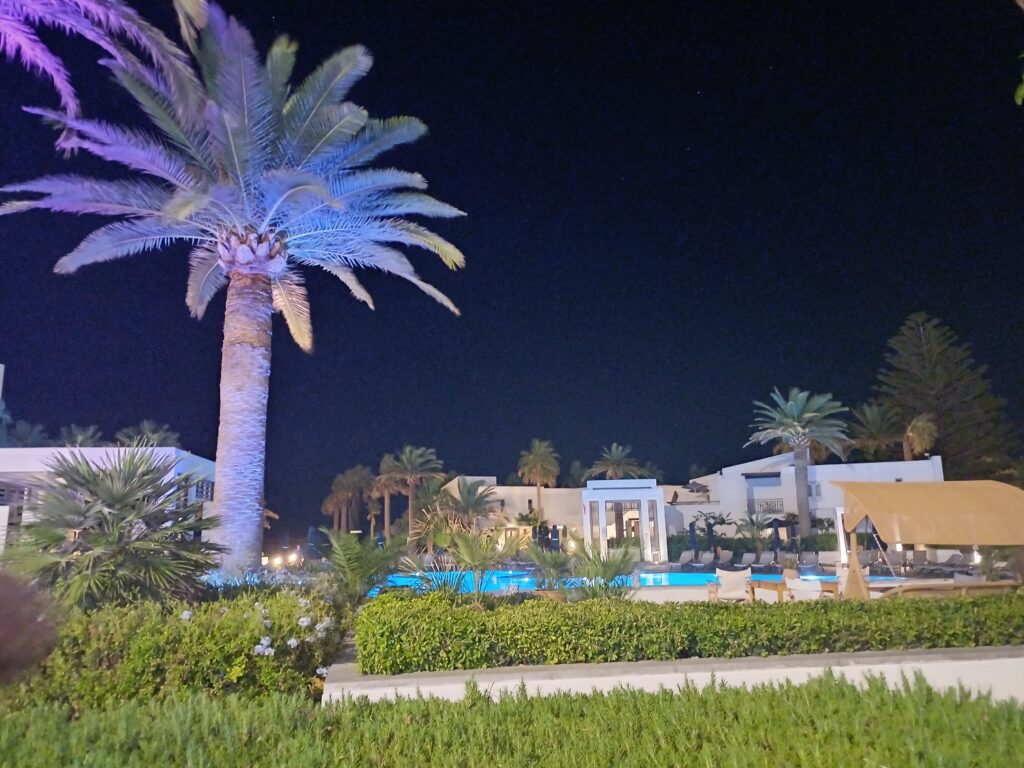 Durch die Verspätung sind wir erst um 22:30 im Hotel Grecotel Creta Palace in Rethymnon! Das Hotelpersonal hat uns super empfangen und auf dem Zimmer gab es ein Snack mit griechischen Wein! Echt Top!