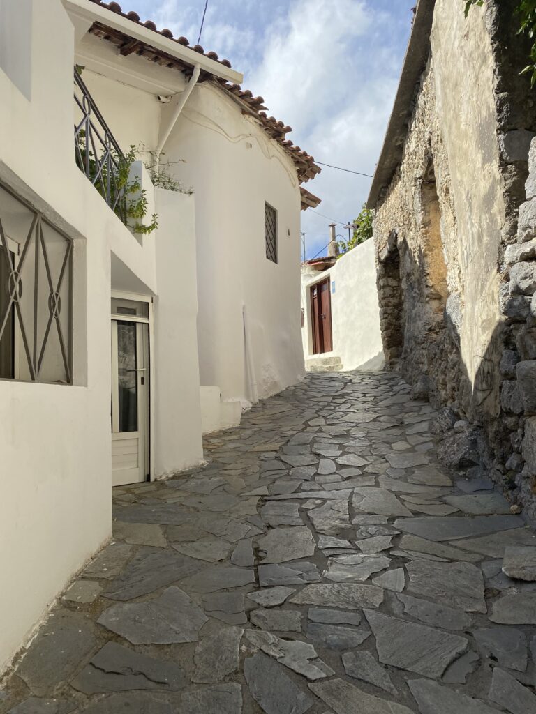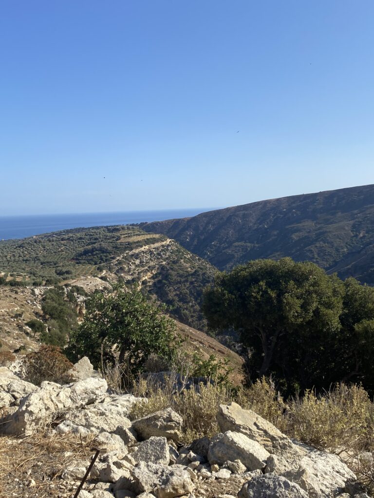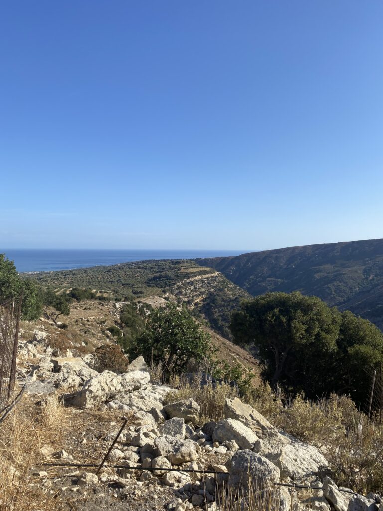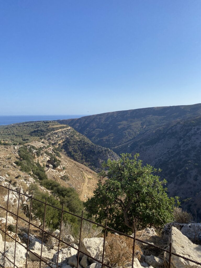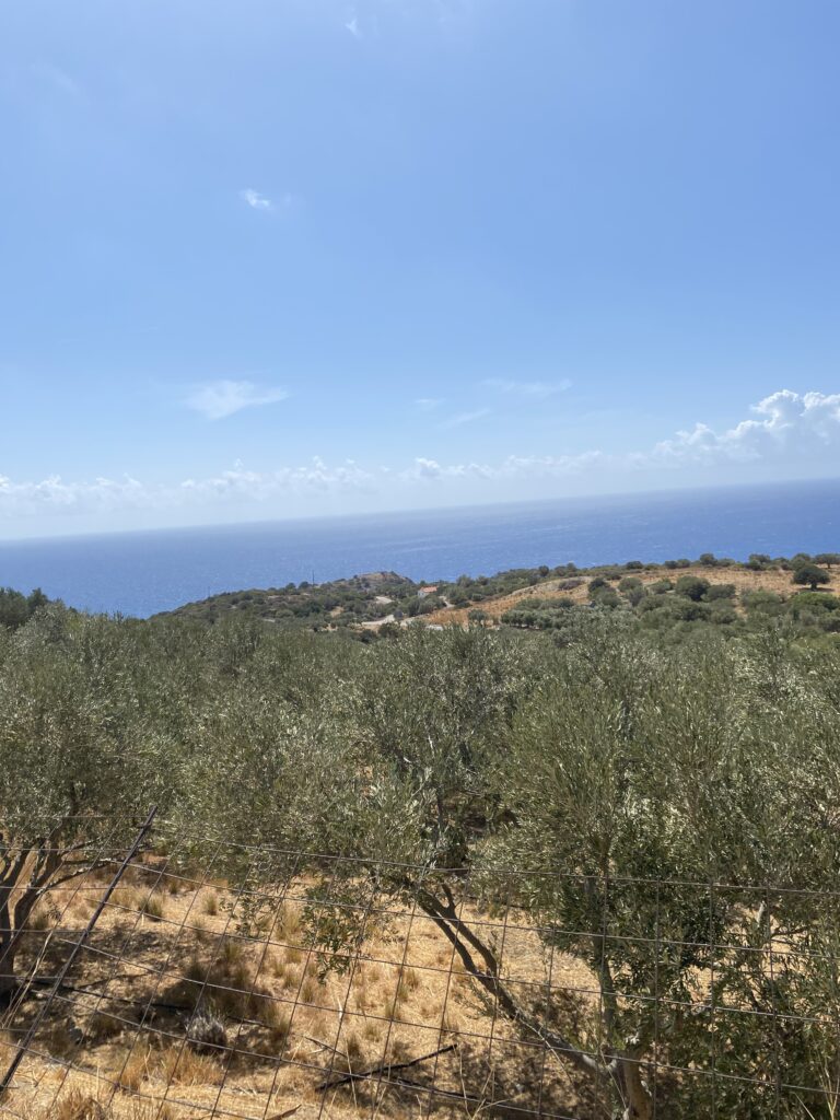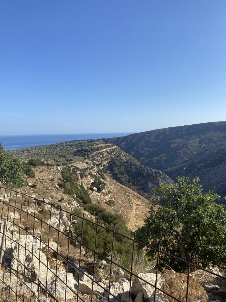 Nächster halt ein Dörfchen namens Karines. Dort wurden wir mit Brot, Oliven, Olivenöl, Feta und Raki verkostet. An einem Baum hingen Früchte und zwar die chinesische Datteln. Eine ältere Frau sprach uns an diese zu probieren! Nachdem sie eine Frucht gegessen hatte, trauten Cedi und ich uns auch! Die Frucht schmeckte nach Apfel, eigentlich ganz lecker!