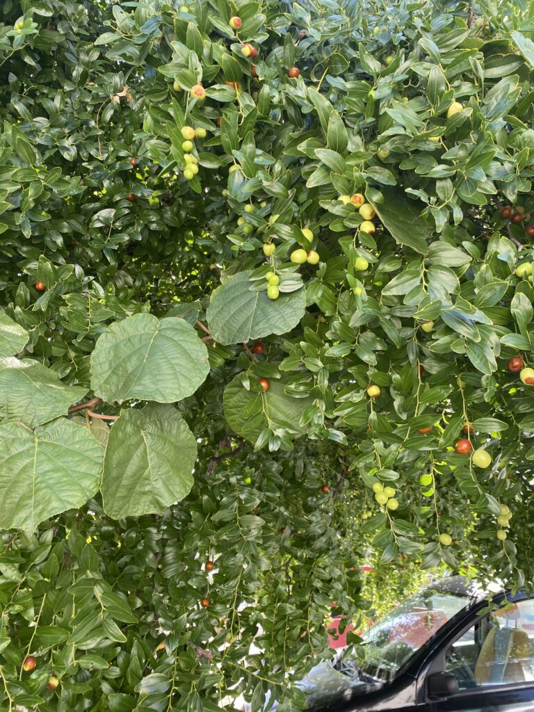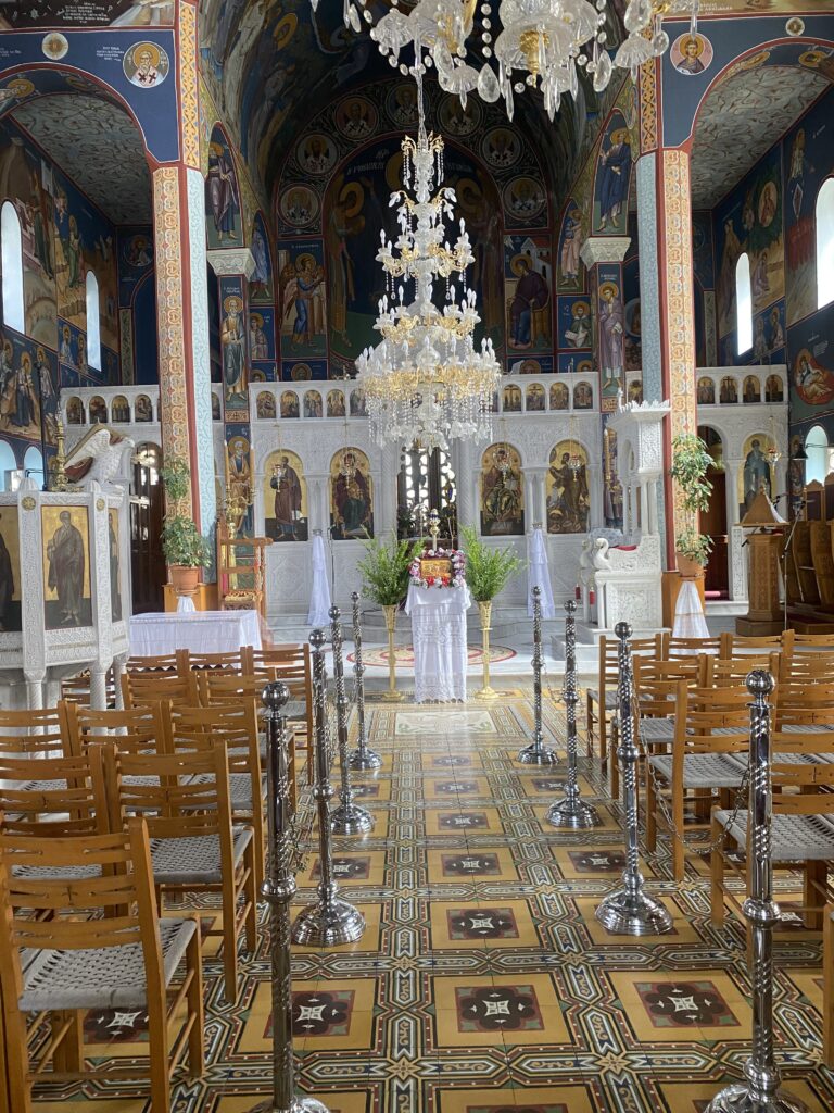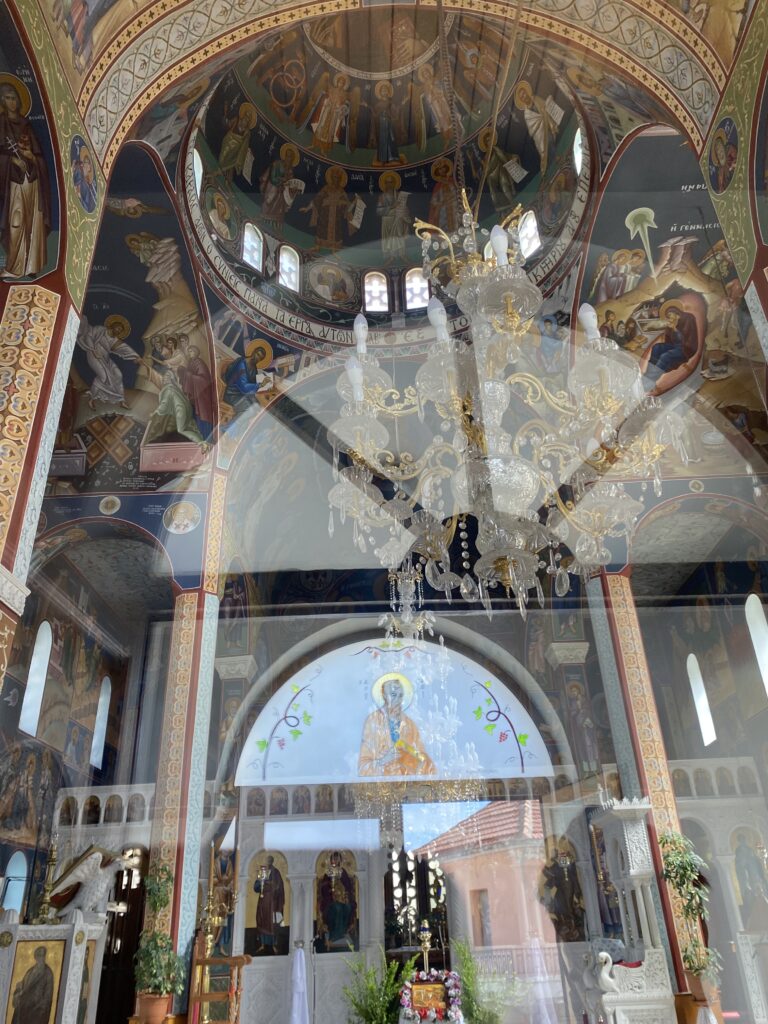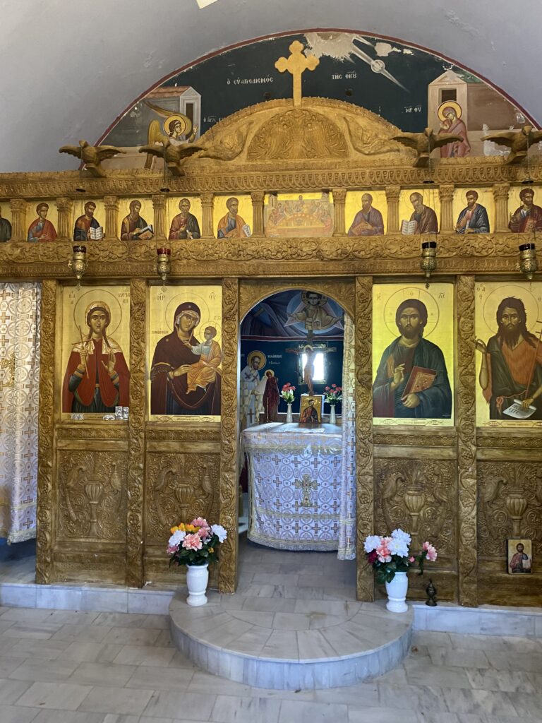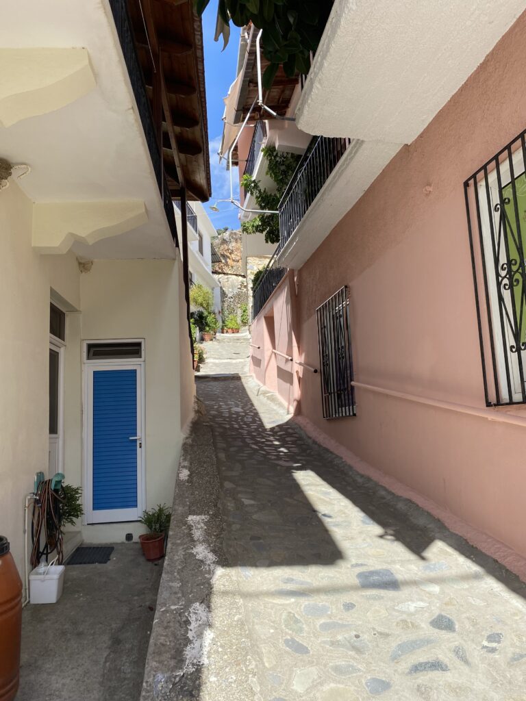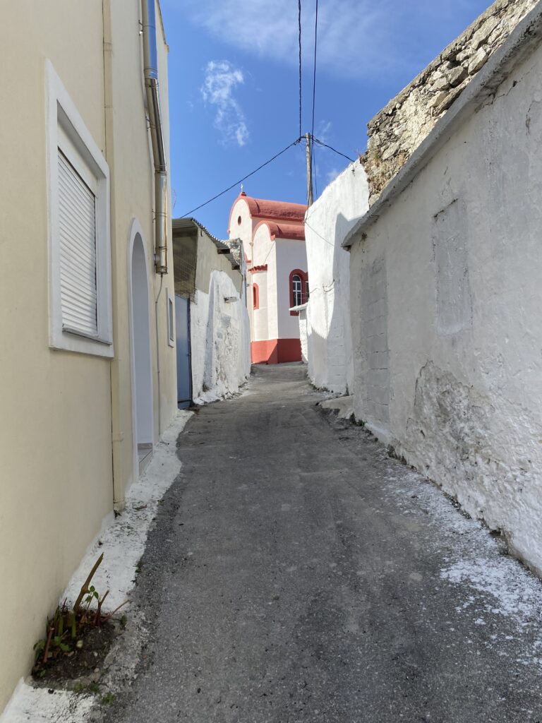 Nächster halt ein Dörfchen namens Karines. Dort wurden wir mit Brot, Oliven, Olivenöl, Feta und Raki verkostet. An einem Baum hingen Früchte und zwar die chinesische Datteln. Eine ältere Frau sprach uns an diese zu probieren! Nachdem sie eine Frucht gegessen hatte, trauten Cedi und ich uns auch! Die Frucht schmeckte nach Apfel, eigentlich ganz lecker!