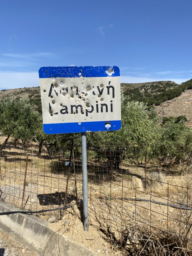 Ach und da war eine schöne Geschichte noch, dass griechische Männer Waffen besitzen und um schiessen zu üben werden Verkehrsschildern als Zielscheibe benutzt .. tja die Griechen ..