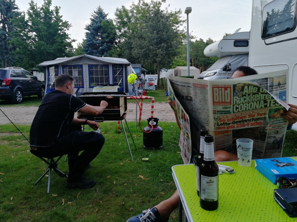 Nach 300 km sind wir in Berlin angekommen – Campingplatz ca. 25 km von Ku’damm. Nach dem Einrichten des Campers und dem Grillen, haben wir uns Richtung Ku’damm gemacht. 8 km mit dem Fahrrad zur U-Bahn Station Berlin Spandau und ab in die City. Um 23:50 Uhr waren wir dann wieder auf dem Campingplatz gewesen.
